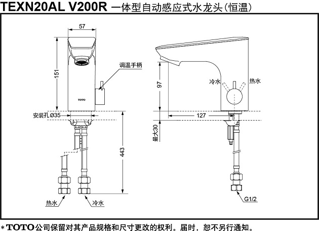 Vòi cảm ứng nhiệt độ TOTO TEXN20AL (China-Nước lạnh-tự tạo năng lượng)